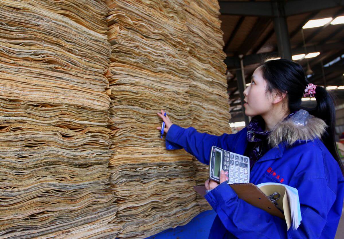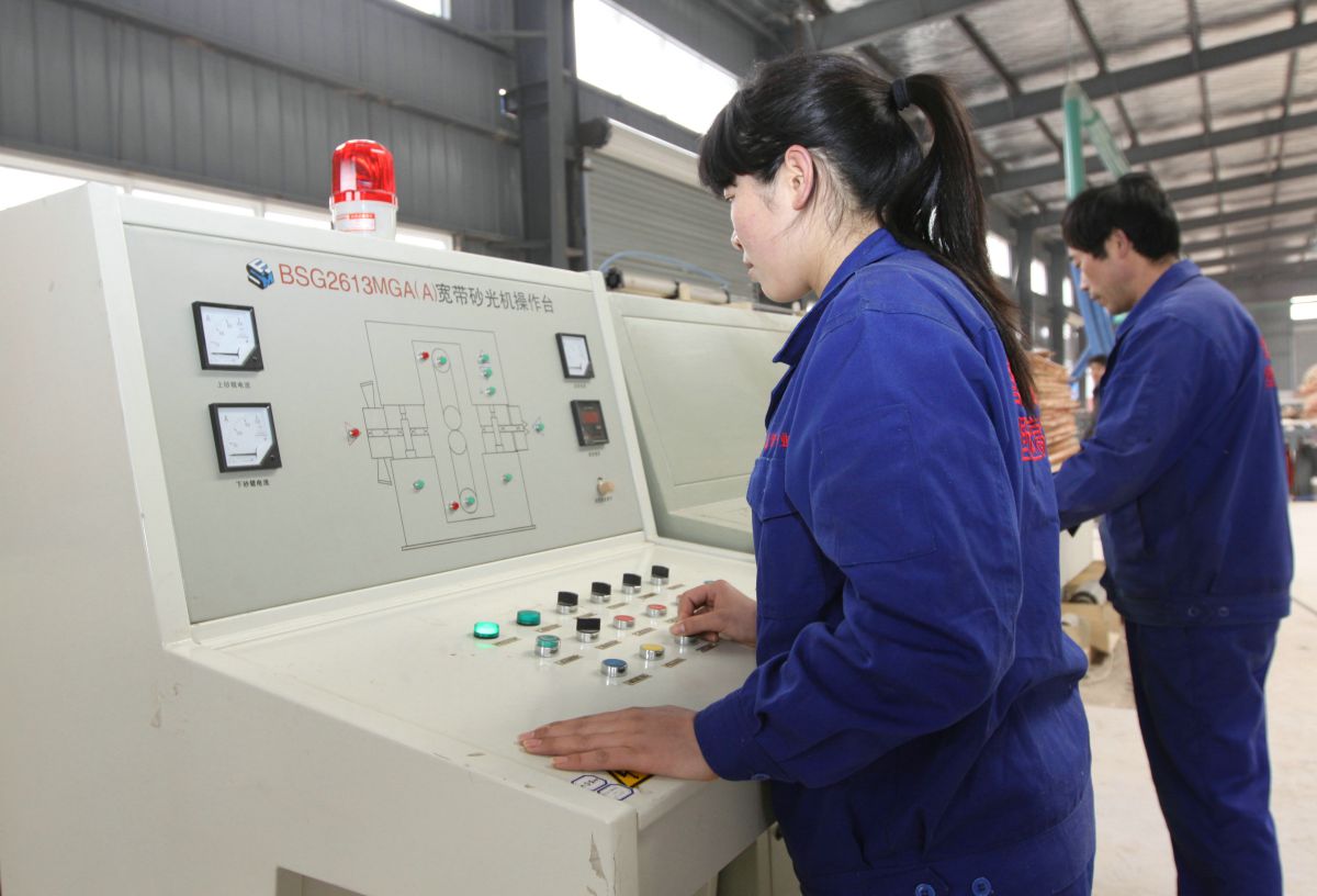 ◆管仲木業(yè)質(zhì)檢員嚴(yán)把進(jìn)貨笑,對(duì)進(jìn)廠板皮的厚度、長(zhǎng)度、平整度、干濕度和板皮品質(zhì)進(jìn)行嚴(yán)格檢測(cè)。